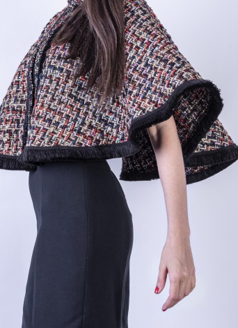 The subline elegance of a Mantiglia bon-ton in warm tweed. This short mantle gives any outfit a sober and chic mood. A must-have unmissable in the wardrobe of each fashion-victim